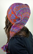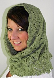 Designer: Danah Hughes At one time, Danah was an employee of NKK | Danah's Ear Flap ![]() 3 skeins Brown Sheep Nature Spun Sport Weight 184 yds/1.75 oz. 2 Bull Dog, 1 Blue Fog | Designer: Nancy Shroyer | Lace Hooded Cowl![]() | |