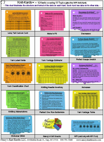 Over the years, Nancy wrote the contents of the Knit-Kards from both things that she had learned and things that she had developed. Once again, these were items that were typically and easily forgotten by most knitters.