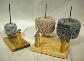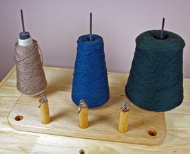 We have a selection of cone holders in our YArn Pet Line (Pet, Duo and Trio). These innovative cone holders are technically superior to the traditional vertical holders that simply serve as a rest for the cone. We spin the cone and eliminate the re-twisting of yarn and we add an onboard tensioner. We have many different yarn guides as well to steer the yarn wherever the user wants it to go.